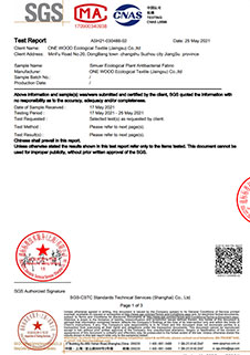 絲木爾面料SGS國際抗菌檢測證書